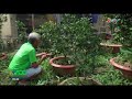 | Ông Lưu Văn Ràng đang chăm sóc quýt hồng trồng trong chậu kiểng. |